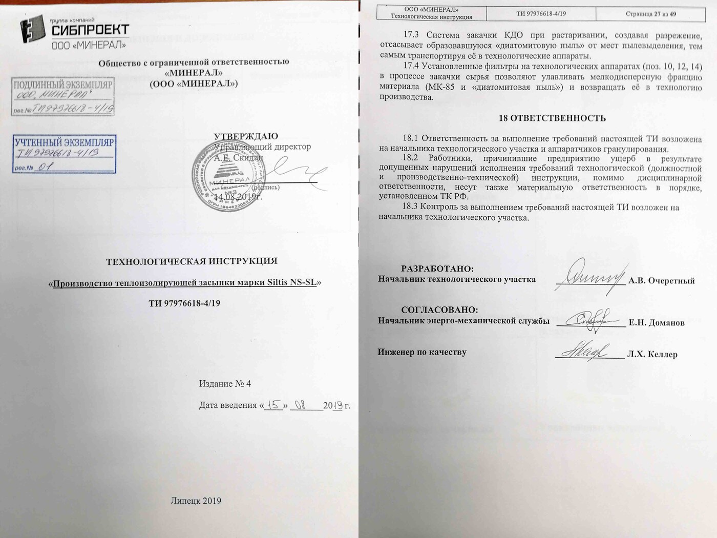 Оперативное руководство технологическим процессом участка по производству теплоизолирующих смесей для ЧВК и сталеразливочных ковшей. Обеспечение: строгого выполнения технологического регламента и технологических инструкций подчиненным персоналом, правильной технической эксплуатации оборудования. Осуществления контроля по обеспечению производств материальными и энергетическими ресурсами, а также экономным использованием реагентов, материалов, энергоресурсов. Долгосрочное и краткосрочное планирование производства. Проведение анализа по результатам производственно-хозяйственной деятельности, участие в проведении внутреннего аудита. Ведение отчётной документации, Работа в 1С ("Документооборот", "УПР"), Excel. Участие в разработке новых видов огнеупорной продукции и проведении опытных работ в ПАО "НЛМК".